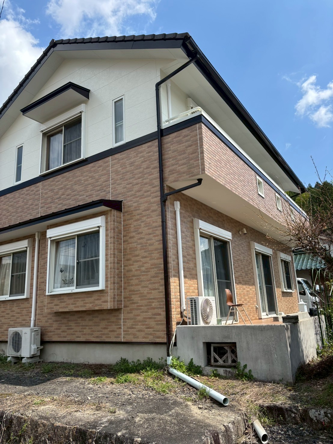 瑞浪市釜戸町にて外壁塗装が完了しました。 なんとたまたま過去に瑞浪で施工させて頂いた方の妹様のご自宅でした。東農は狭い (笑) 全体的なチョーキングが進行していました、高圧洗浄できれいに洗浄し1Fはクリヤーにて施工 大変お世話になりました。